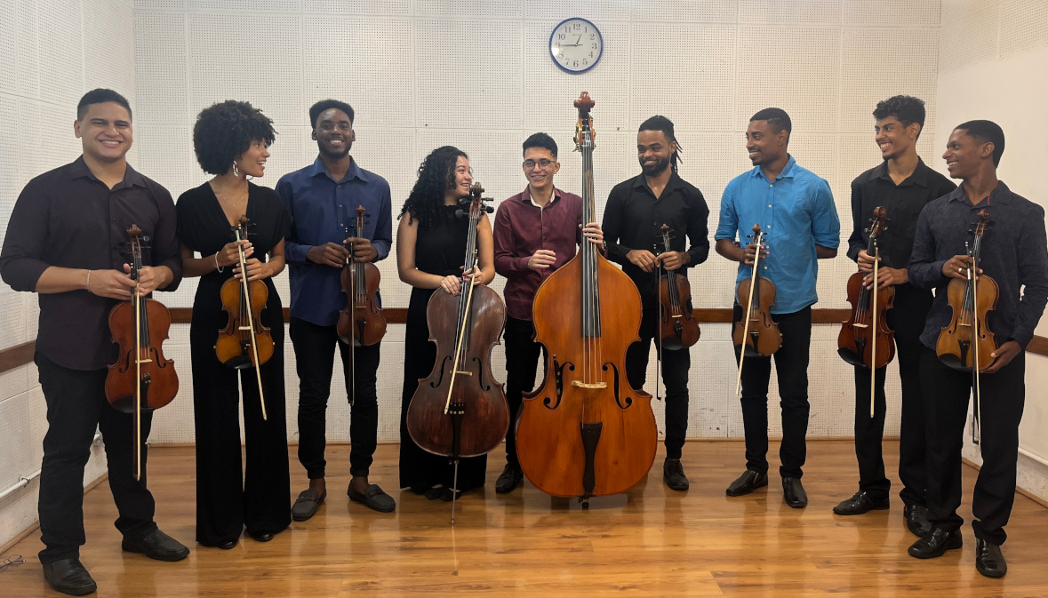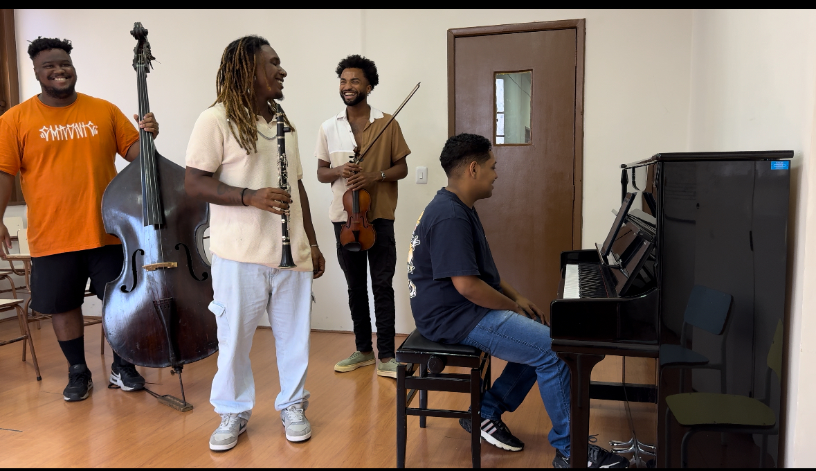 Somos a Camerata Scherzo, grupo iniciado no final do ano de 2023 por jovens estudantes de música de projetos sociais e universidades públicas de música do Rio de Janeiro. Temos como propósito evoluir e crescer juntos musicalmente, trabalhando repertórios bem ecléticos, desde músicas barrocas até contemporâneas, com enfoque no repertório latino-americano.